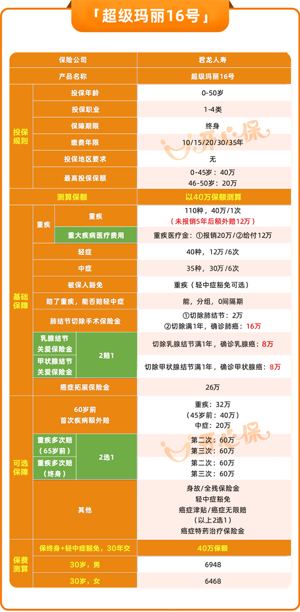 对于正在考虑配置或加保重疾险的朋友来说,超级玛丽16号无疑是近期值得重点关注的成人重疾险之一。