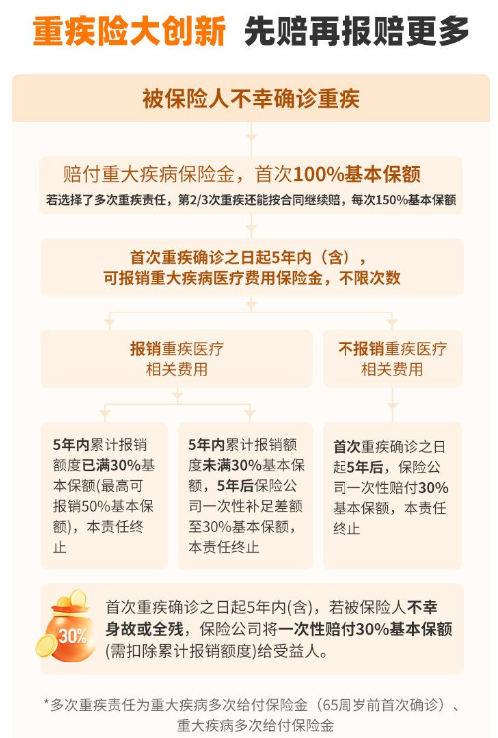 亮点一:行业首创重疾医疗保险金,先赔再报保障翻倍
